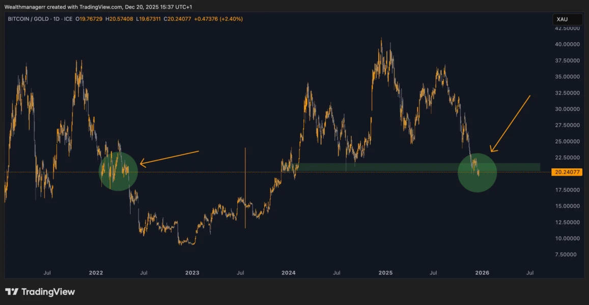 Bitcoin’s RSI against gold is hovering near three-year lows at a critical support…